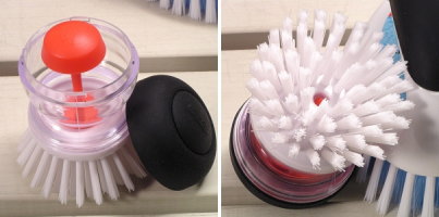 手を汚さずワンプッシュで洗剤が出てくる OXOパームブラシ