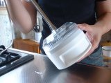 軽量カップを使って卵白を泡立てました。泡立て時間は、卵白2個で約2分。