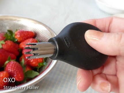 OXOの便利グッズ、苺のヘタと芯を一度に取り除くことができるストロベリーハーラーです。