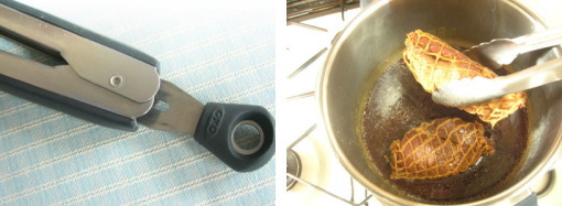 菜箸でやっていた事をトングに変えただけで、いろんな作業がとってもラクになり、時間も短縮できます。 トングを使うようになった時、菜箸を使っていた時はチマチマとお料理をしていなた・・・と感じたくらいです。かたまりのお肉もラクに取り出すことができるんですよ。