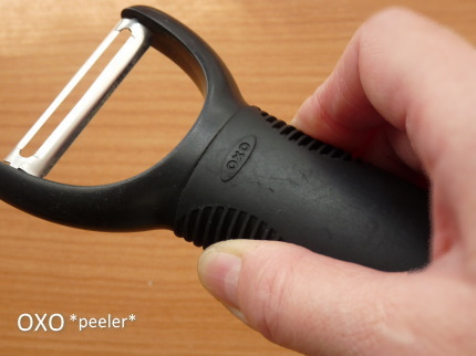 すっかり使い慣れていて特に感じなかったのですが、カレー100皿分のジャガイモ30個の皮をむいた時のことです。一緒に皮むきをしていた方が「手が痛くなってきたー」と言っているのですが、私は全く平気。これってOXOのピーラーのおかげかも??