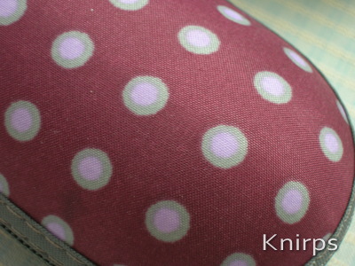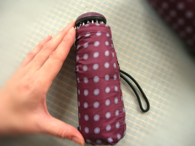 ちょっと色が地味かな?と思ったのですが、広げてみるとかわいくって、パープルというよりもエンジに近い色でした(^^) 水玉模様も、ただの白い水玉模様ではありません。